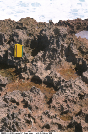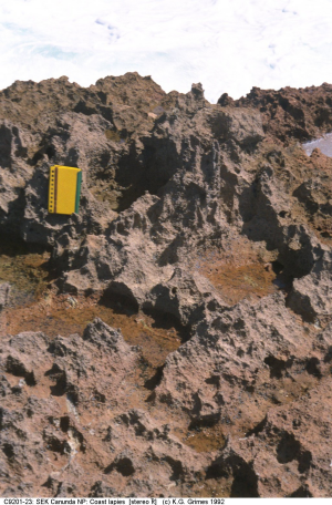 Coastal phytokarst on dune limestone. Notebook is 20 cm high.