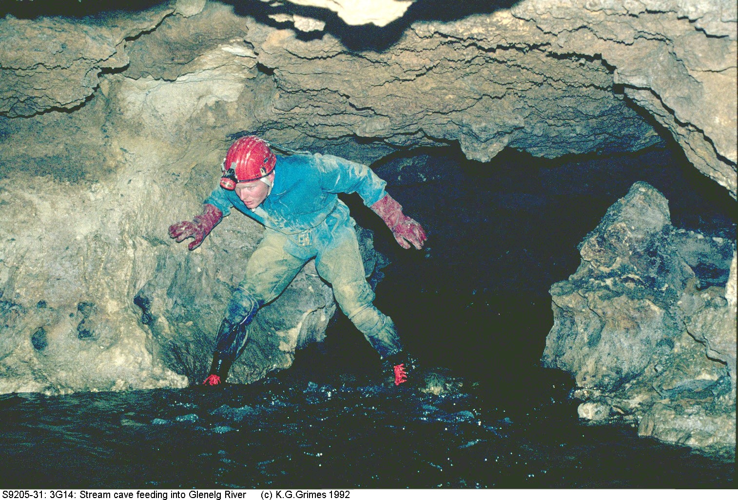 The river provides a local drain, and here we find the only examples of active stream caves in the region S9205-31.3G14.Stream.jpg |