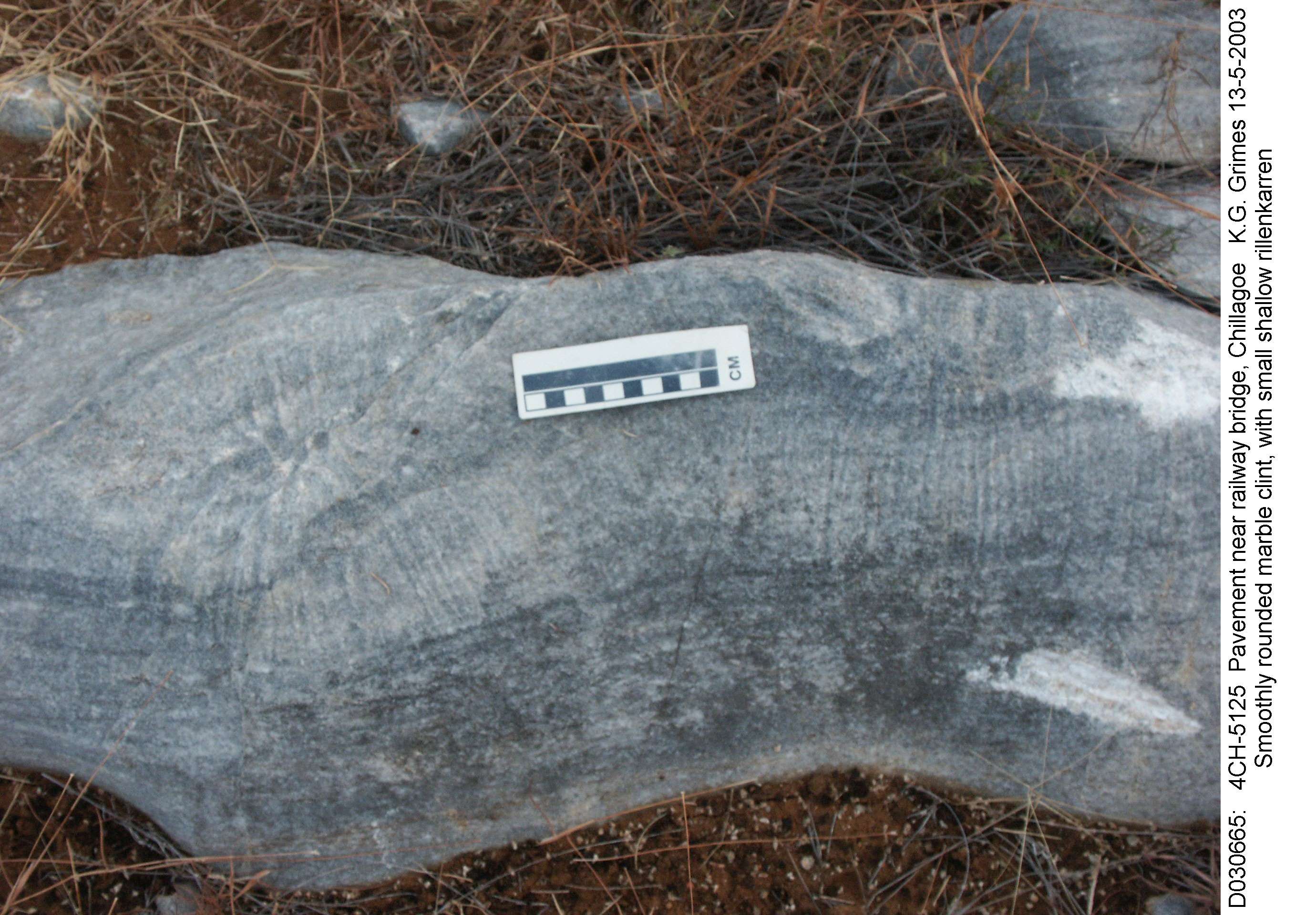 Smoothly rounded clint surface (on marble) with poorly developed rillenkarren. File: D030665.jpg |