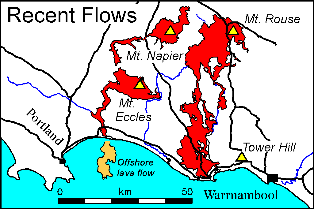 Detail of the younger flows in the western part of the province: Mt. Napier (33 ka), Mt. Eccles (~27 ka) and Mt. Rouse (~400 ka).