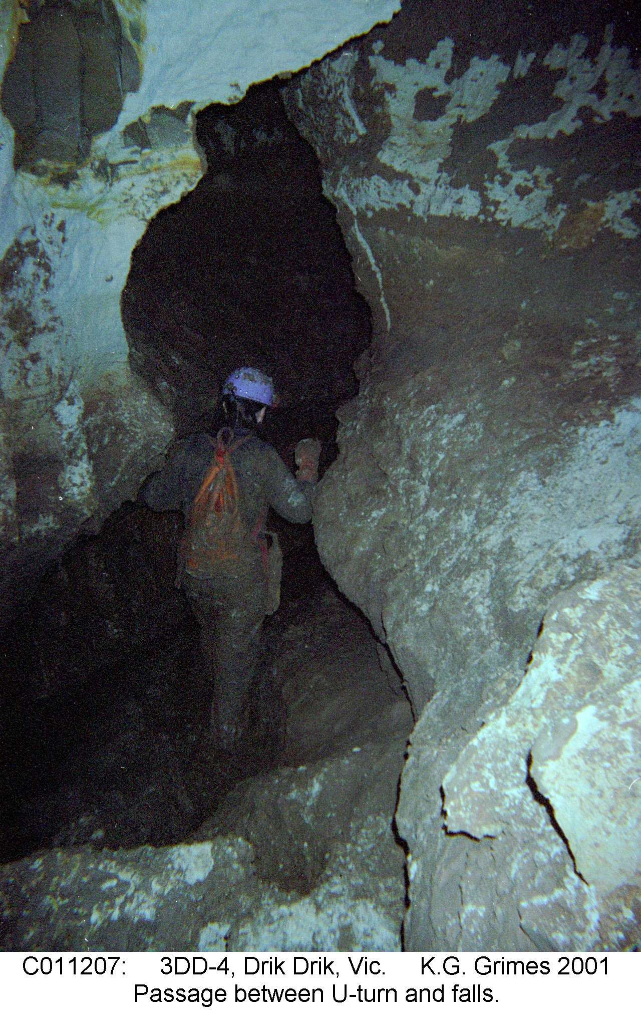 3DD-4: Above the falls. Meandering low-roofed passage. File: C011204.jpg |