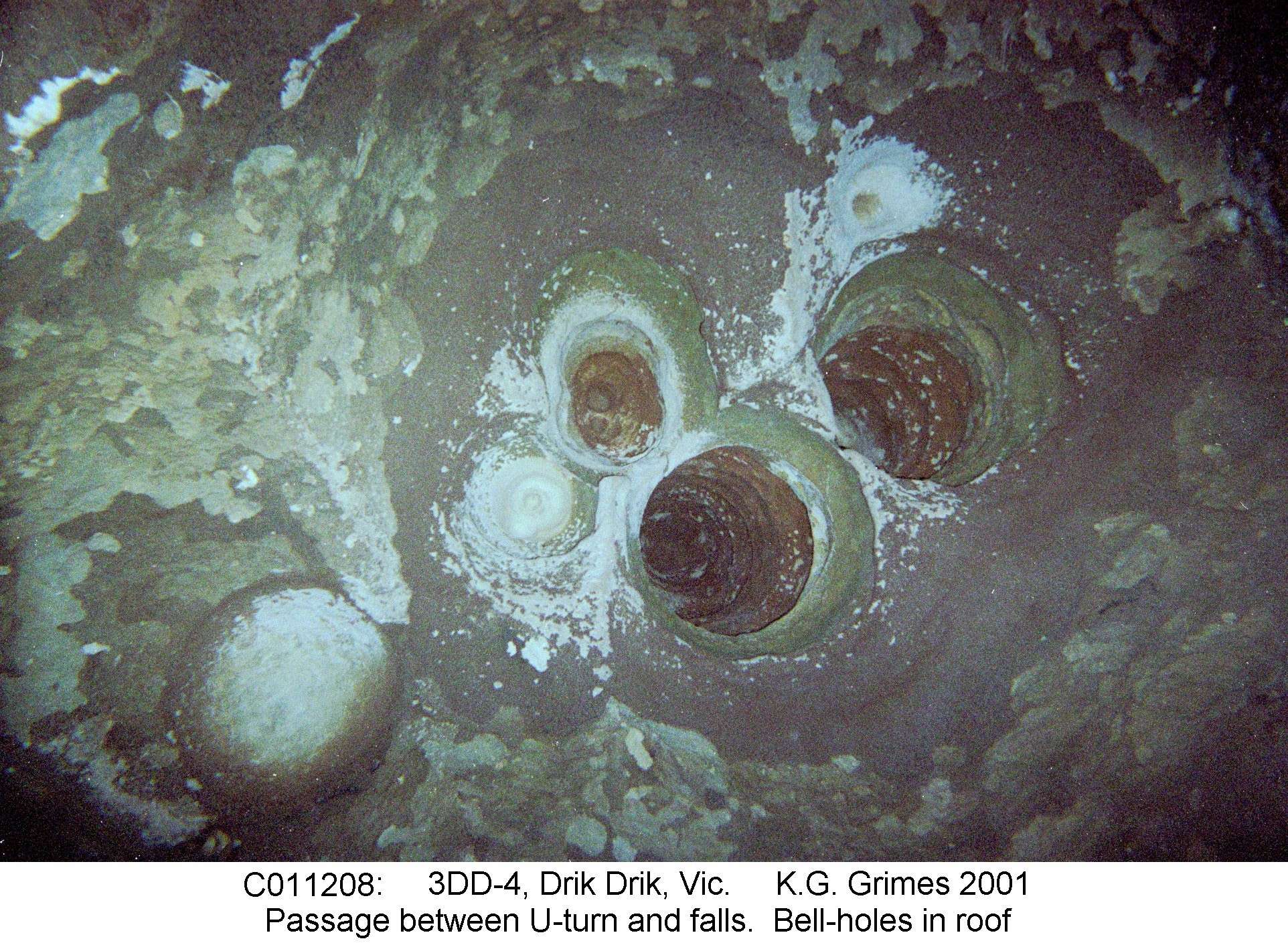 3DD-4: Beyond the U-bend. Bell-holes in ceiling. File: C011208.jpg |