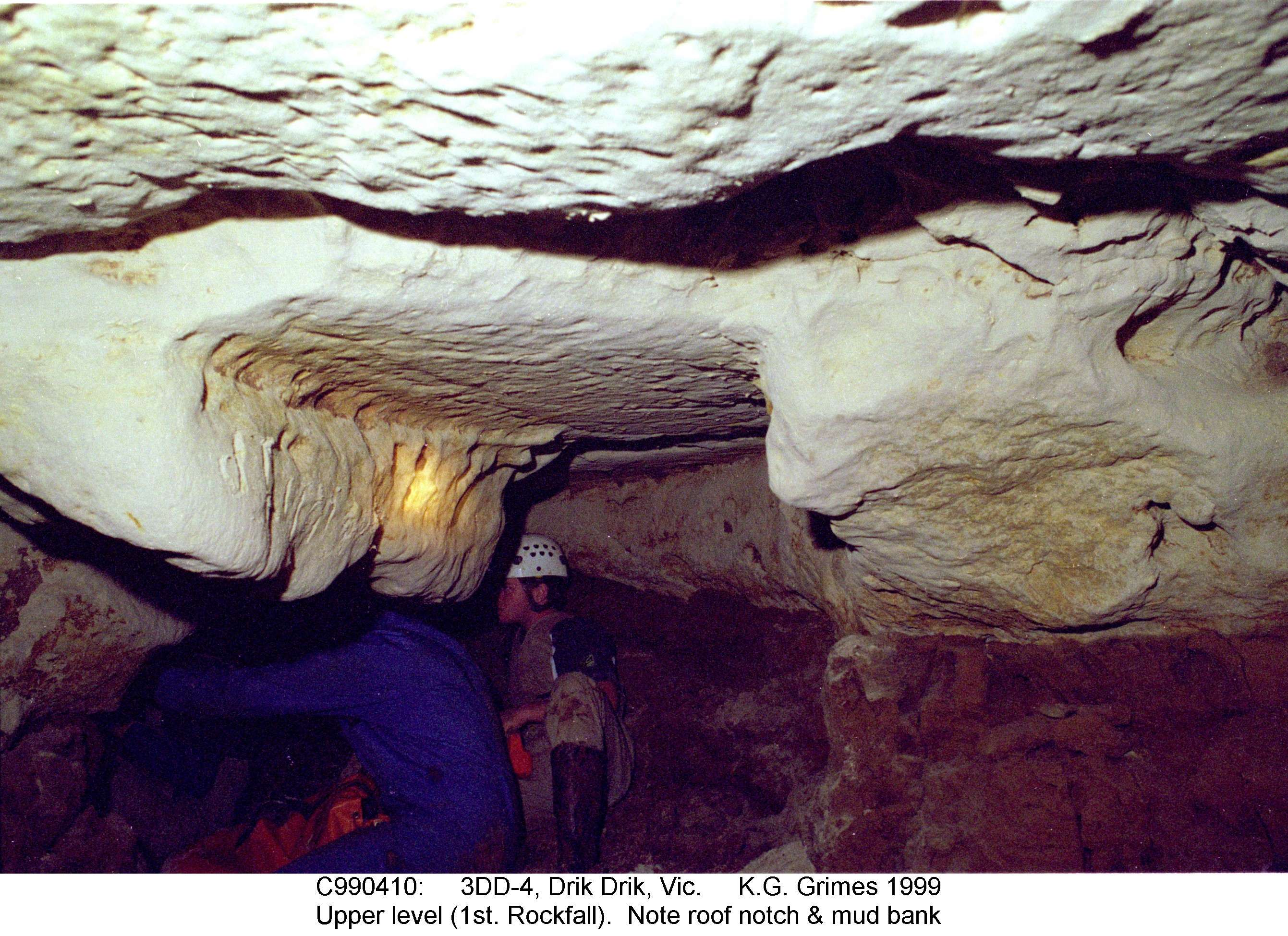 3DD-4: Upper level, above 1st. rockfall. Note roof notch and mud bank. File: C990410.jpg |