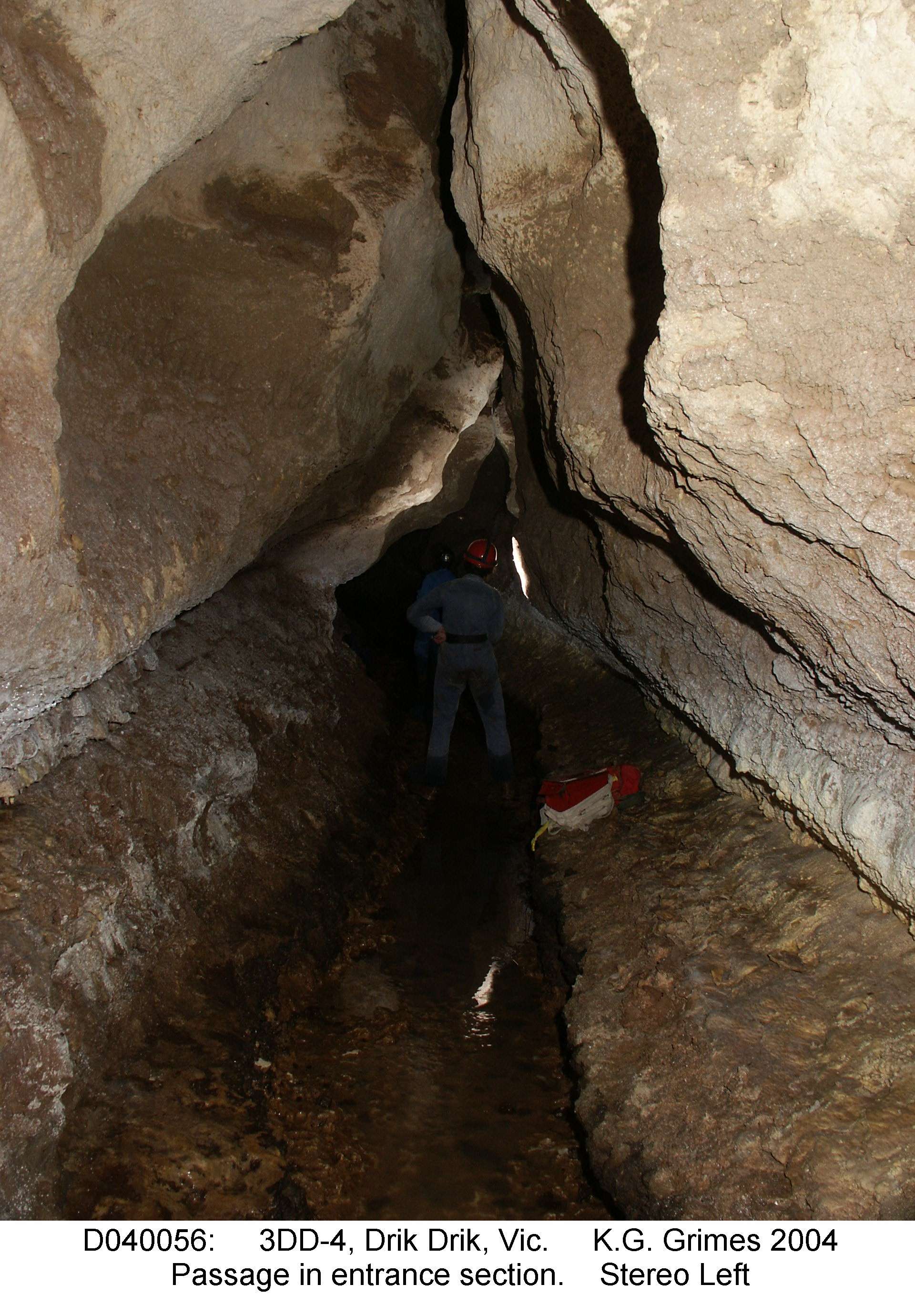 3DD-4: Entrance section. Stream passage. Stereopair (view cross-eyed) File: D040054a.jpg and D040056.jpg |