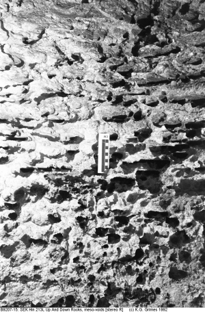 Quarry for building stone. The soft Gambier Limestone is easily sliced up into blocks. Note the soil profile (epikarst) in background, with solution pipes C9905_03.jpg |