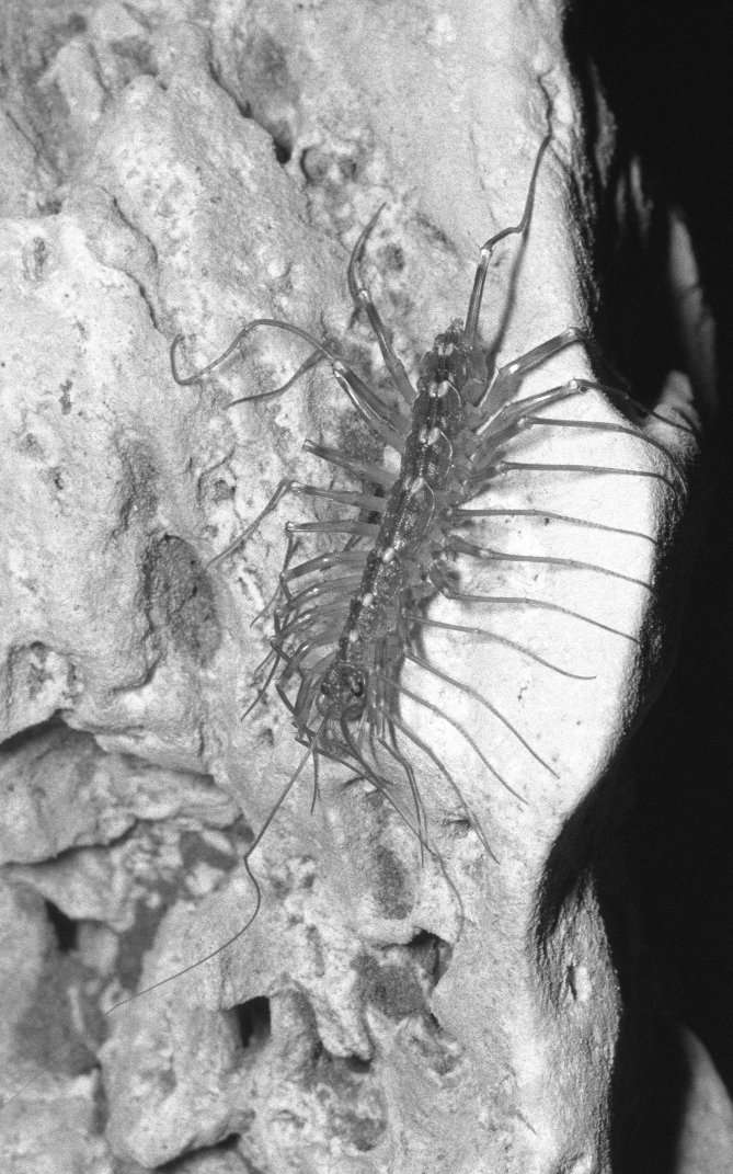 Stutgarids (related to centipedes) such as these are normally fast running. This one must have been sick as it stood still long enough for me to take both photos of the stereopair! Its body is about 20 mm long. StutgarR.jpg