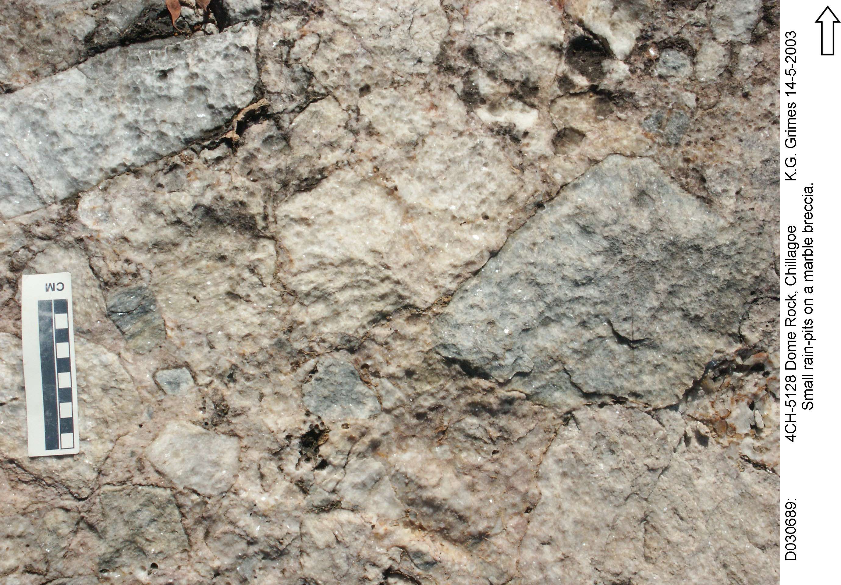 Small "rain-pits" on a marble breccia. File: D030689.jpg |
