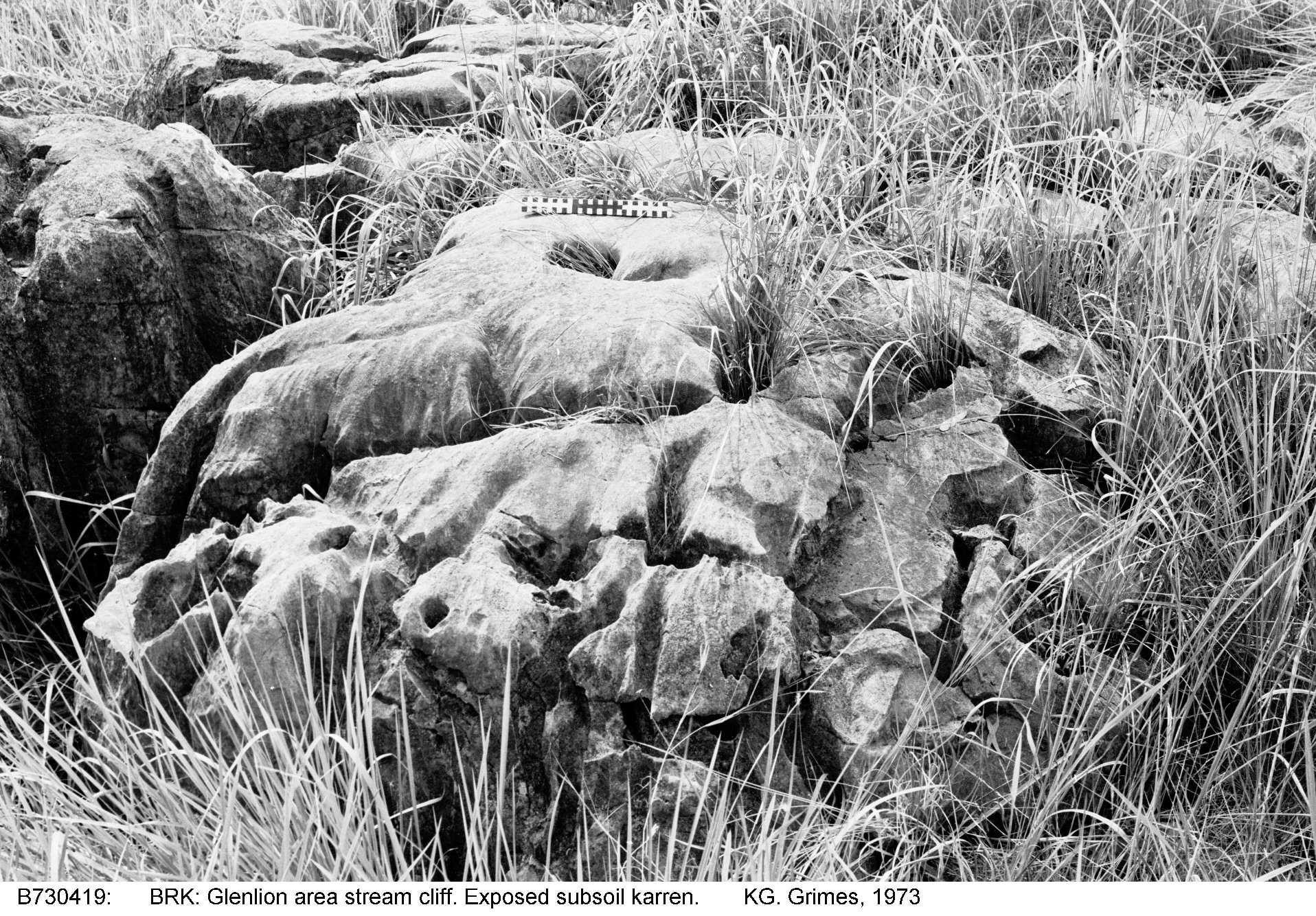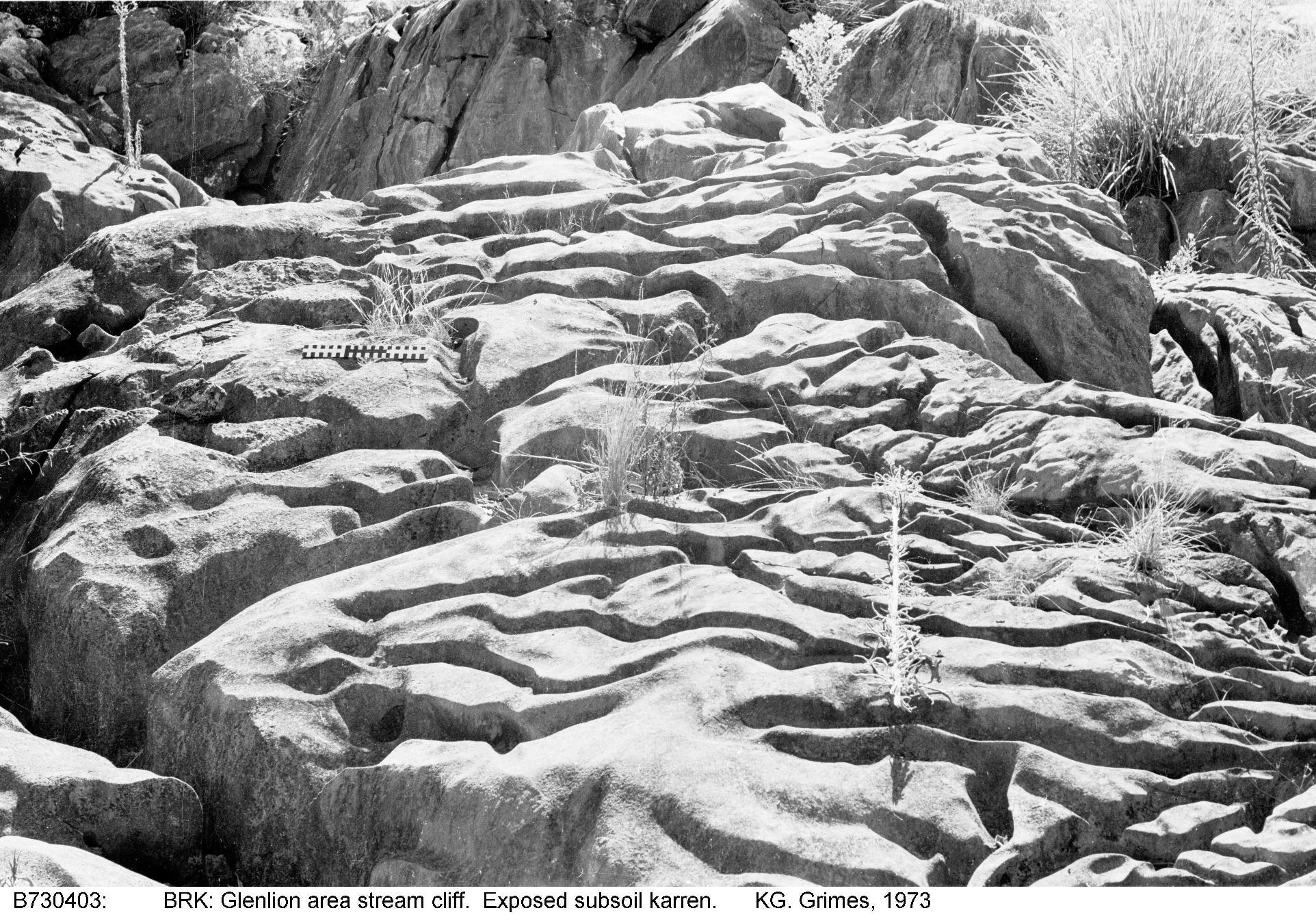 Glenlyon streamcliff. Exposed subsoil karren. File: B730403.jpg |