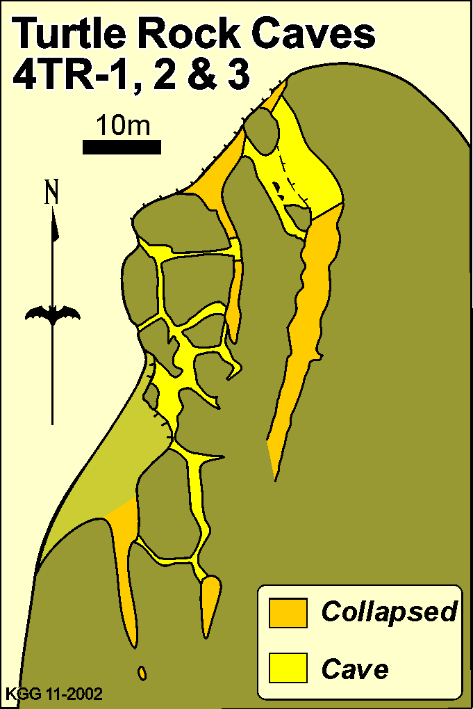 Map of the Turtle Rock caves, showing collapsed sections as well as roofed cave.