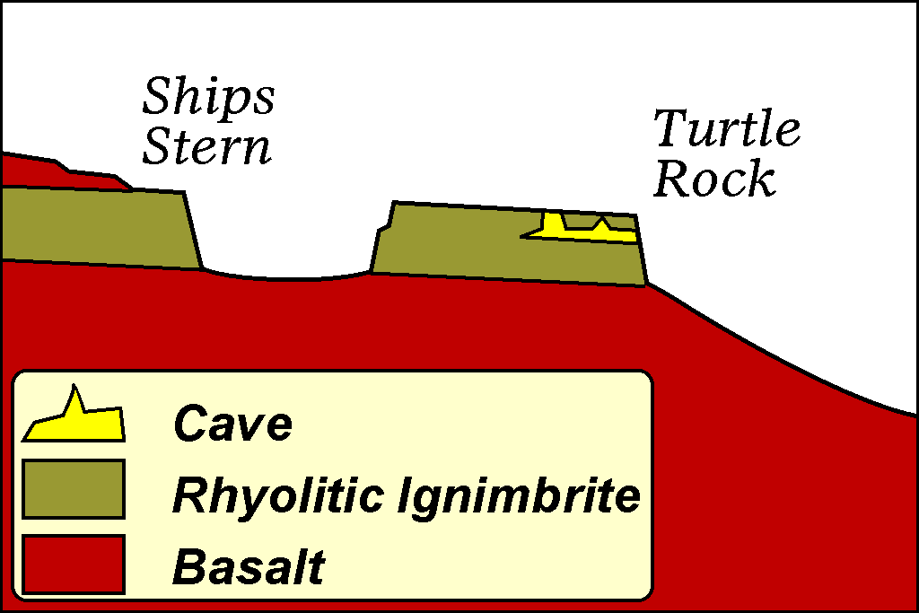 Diagrammatic cross section of Turtle Rock and Ships Stern, showing geology.