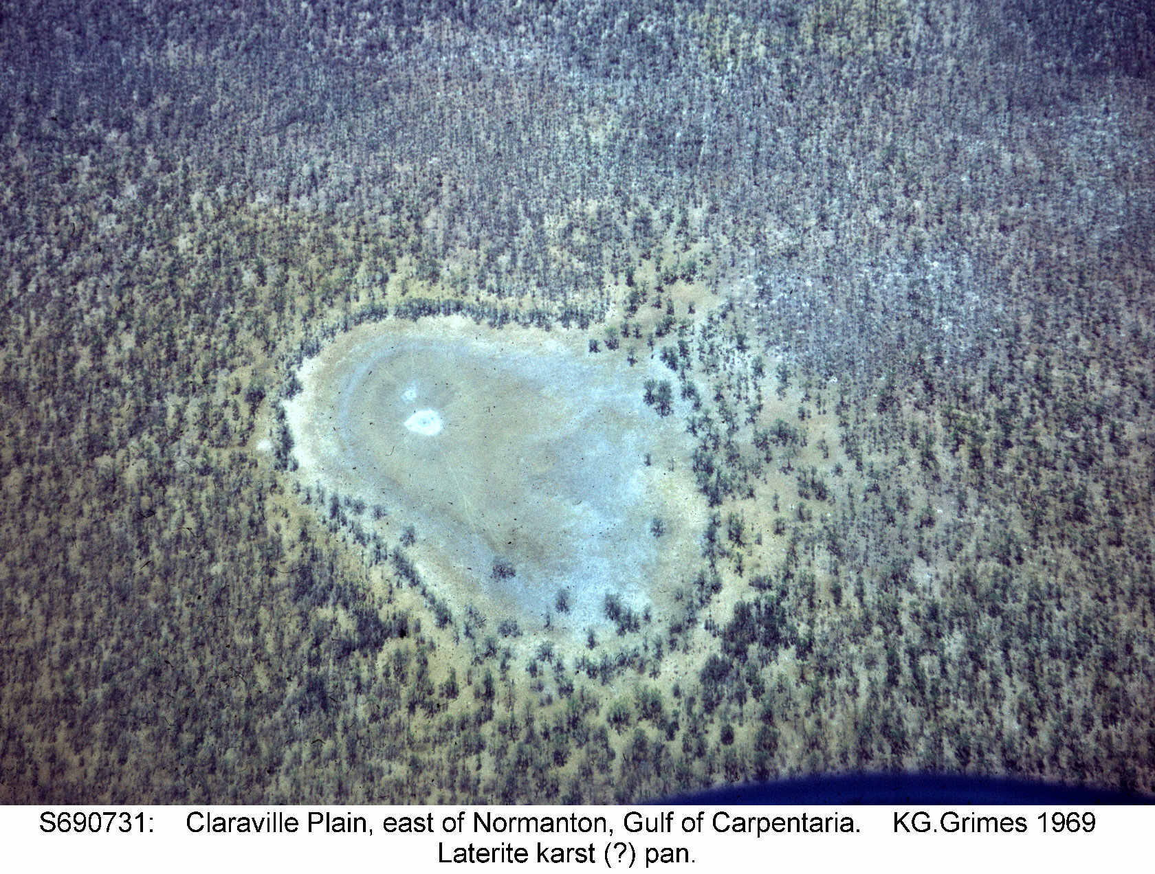 Aerial oblique view of a shallow pan on a lateritic plain in the Gulf of Carpentaria, Queensland.