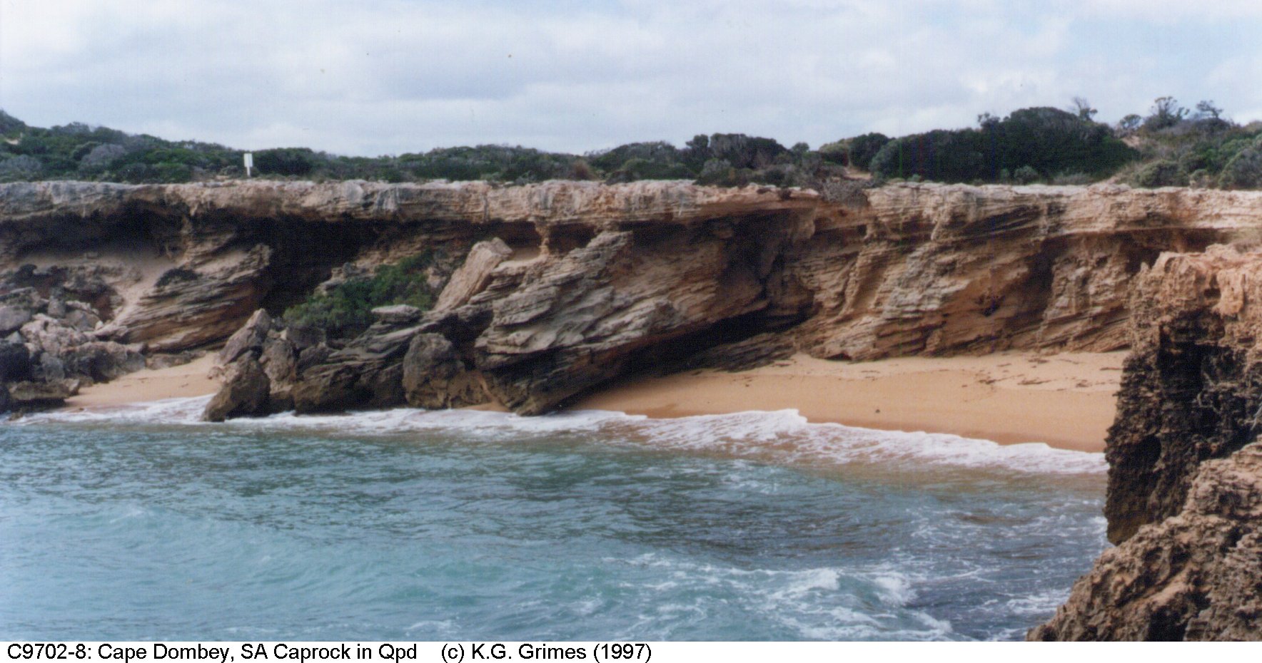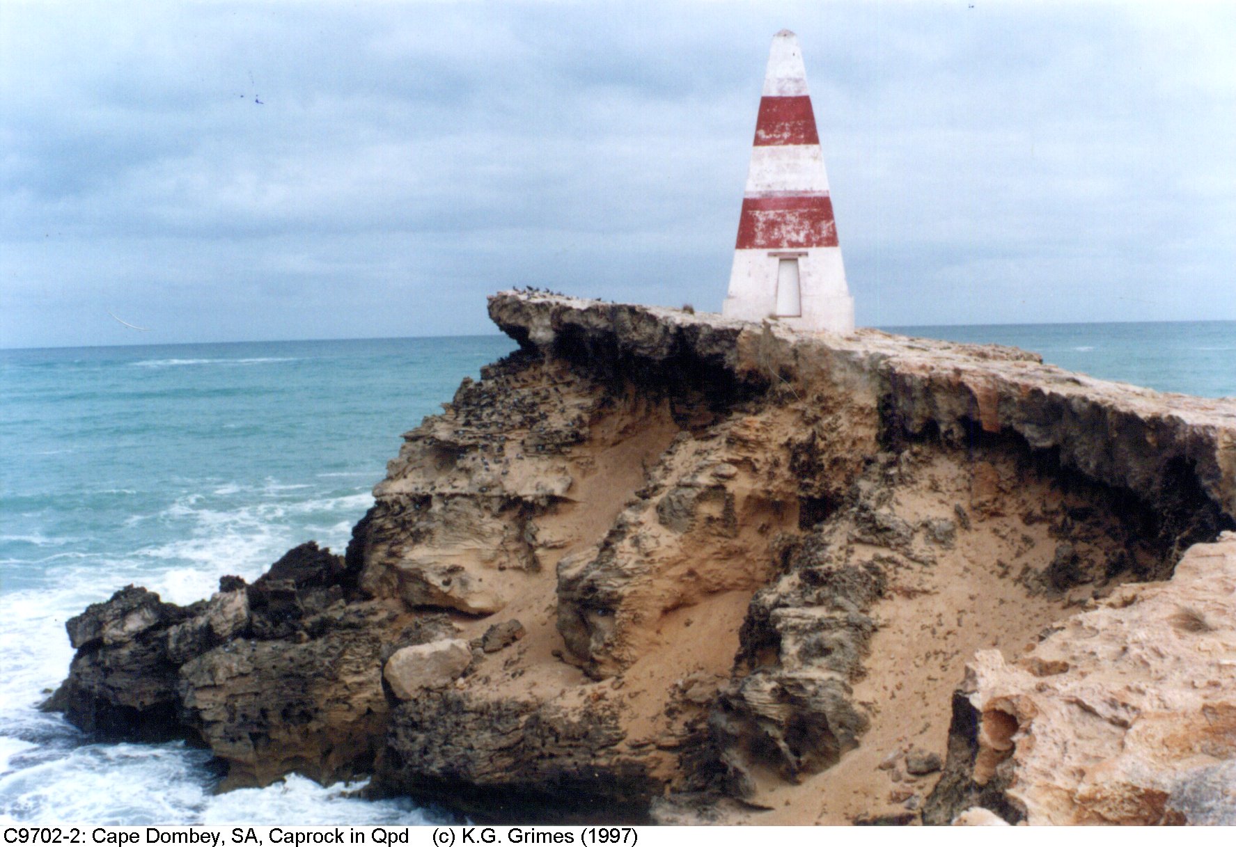 Caprock on a dune limestone surface, exposed in a coastal cliff. C9702_2, Cape Dombey, SA. |