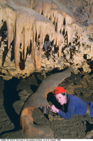 Re-solution of speleothems in a cave near a swamp that has had fluctuating water levels in the glacial-interglacial cycles. Codrington, Vic. C9604_18.jpg |