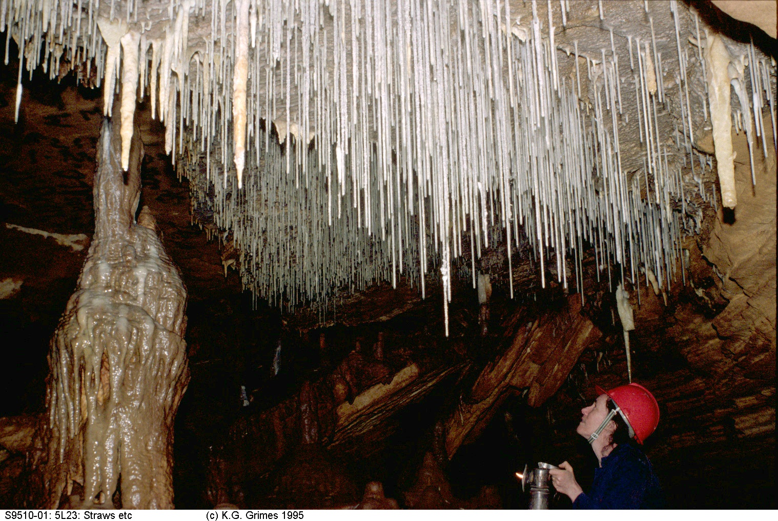 Moonmilk is common in the caves. Possibly a result of the porous host rock S9503_03.jpg |