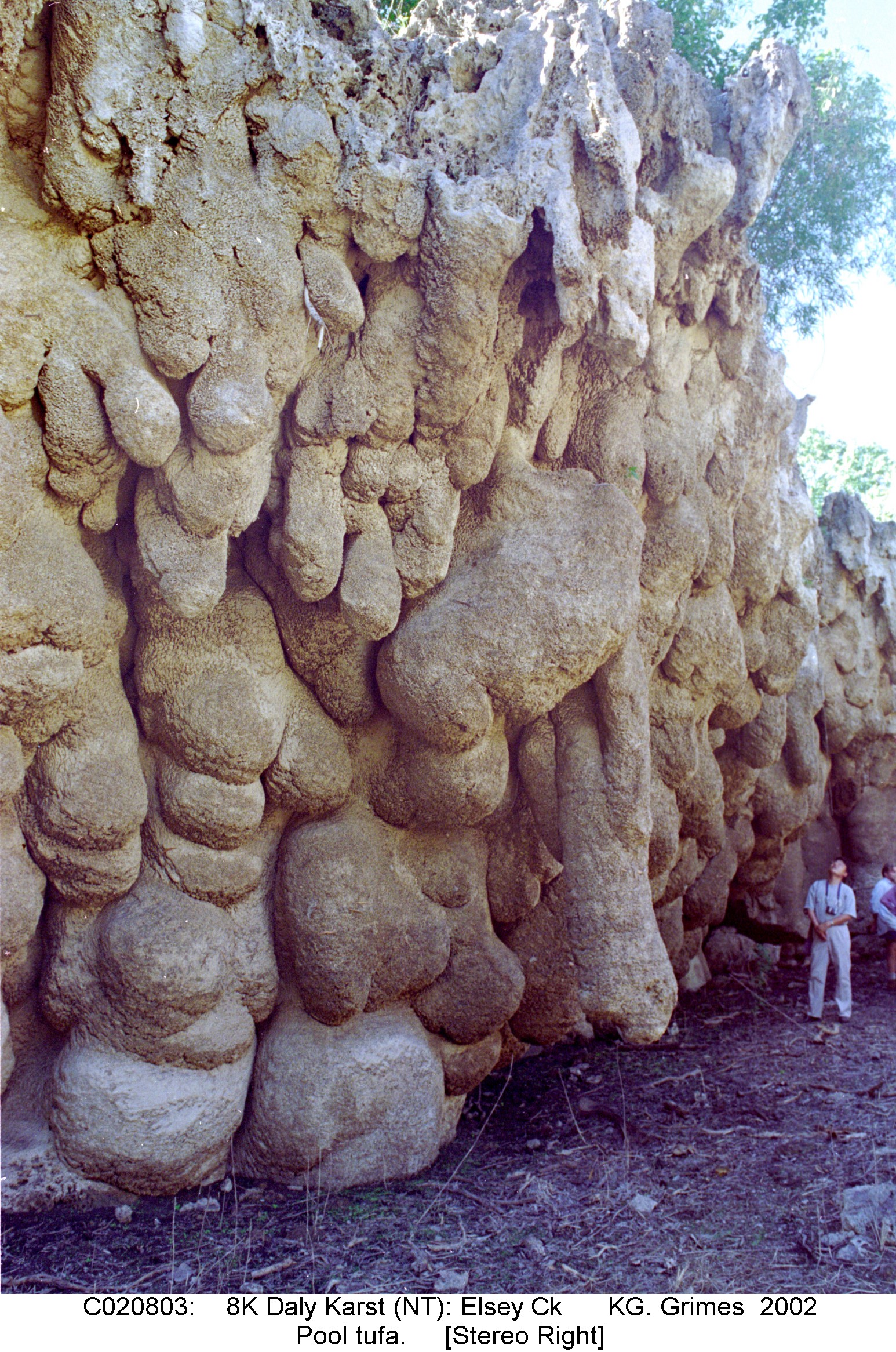 Elsie Ck., Daly Karst Region, Northern Territory. Lobate tufa wall - possibly an old pool deposit. File: C020801.jpg |
