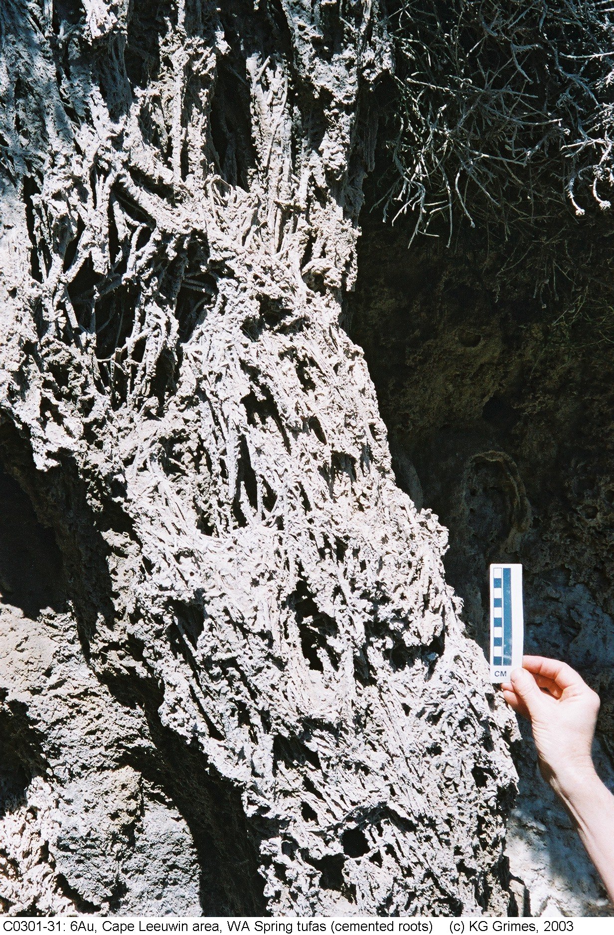 Cape Leeuwin area, south-west Western Australia. Calcified roots in an area of spring tufas. File: C030131.jpg |