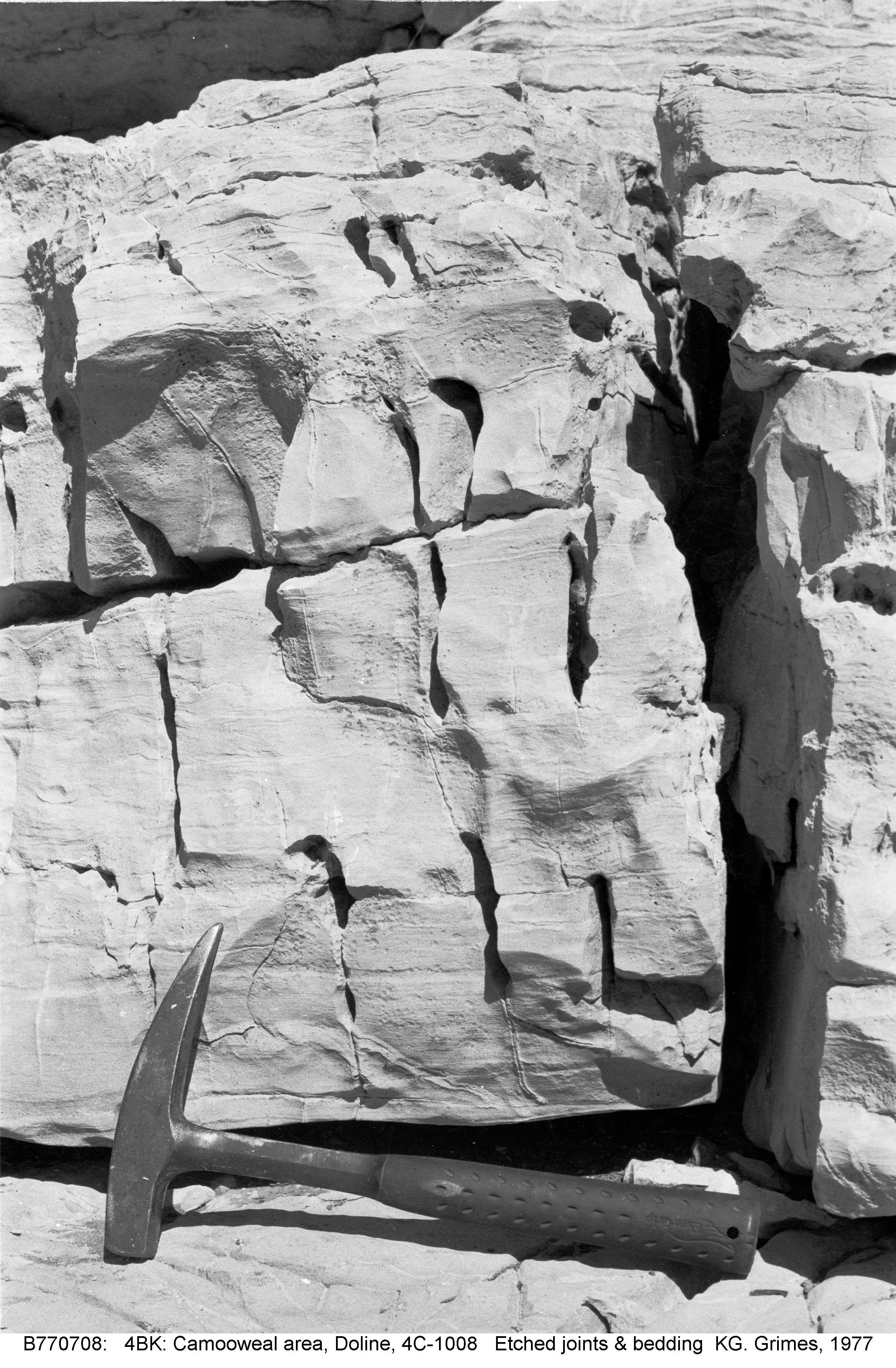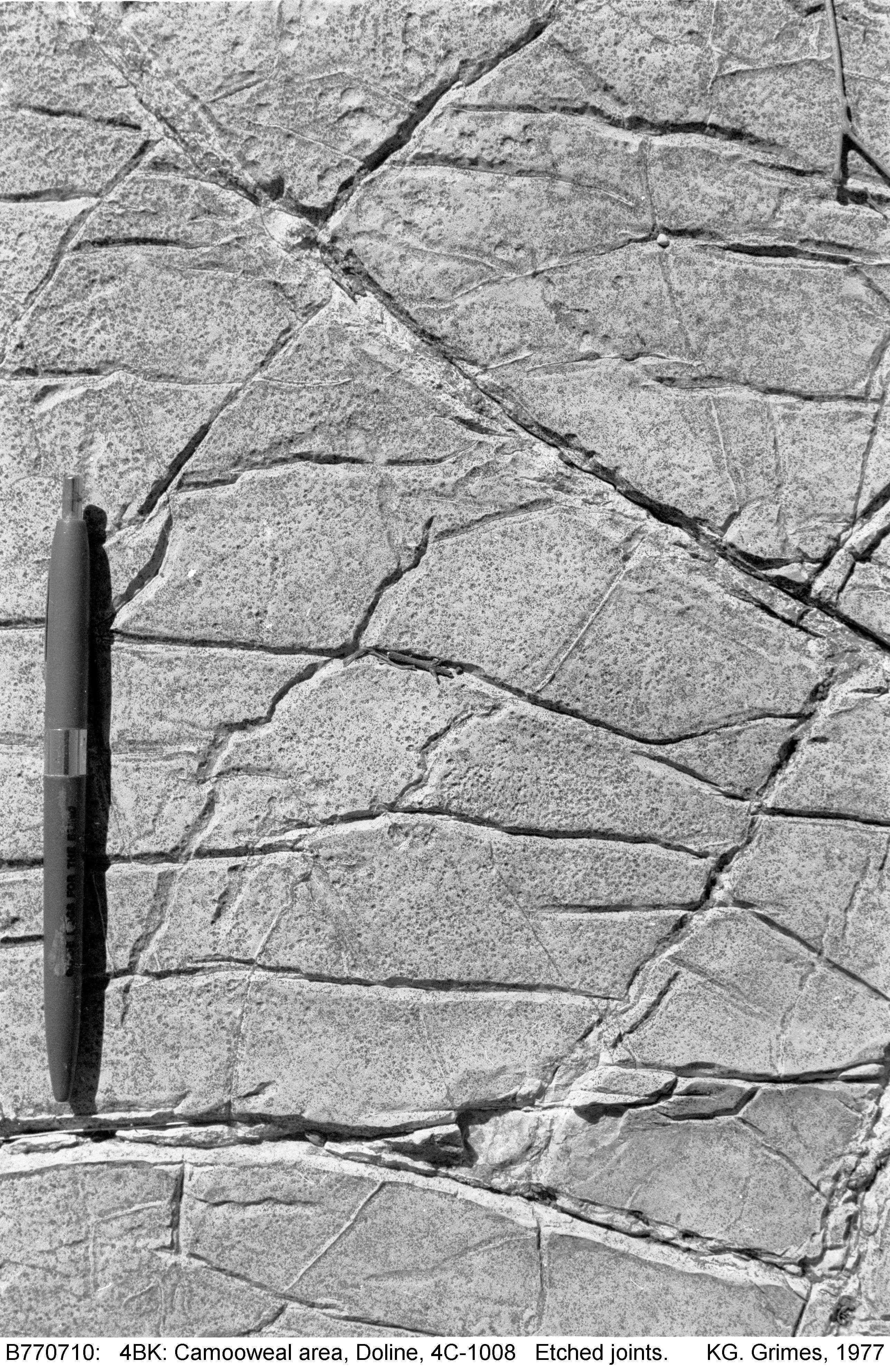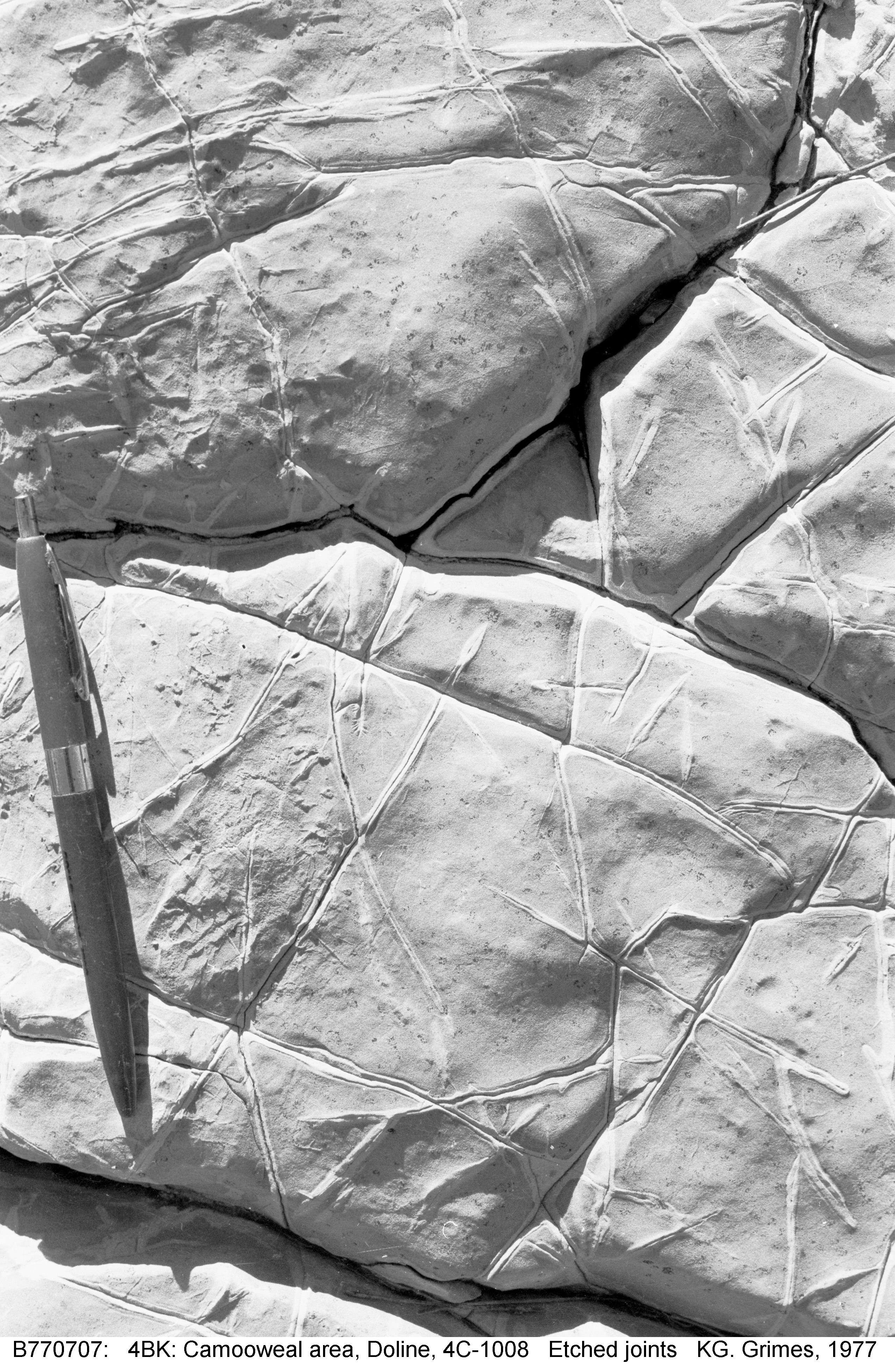 Etched joints, with weathered halos. In dolomite. File: B770707.jpg |