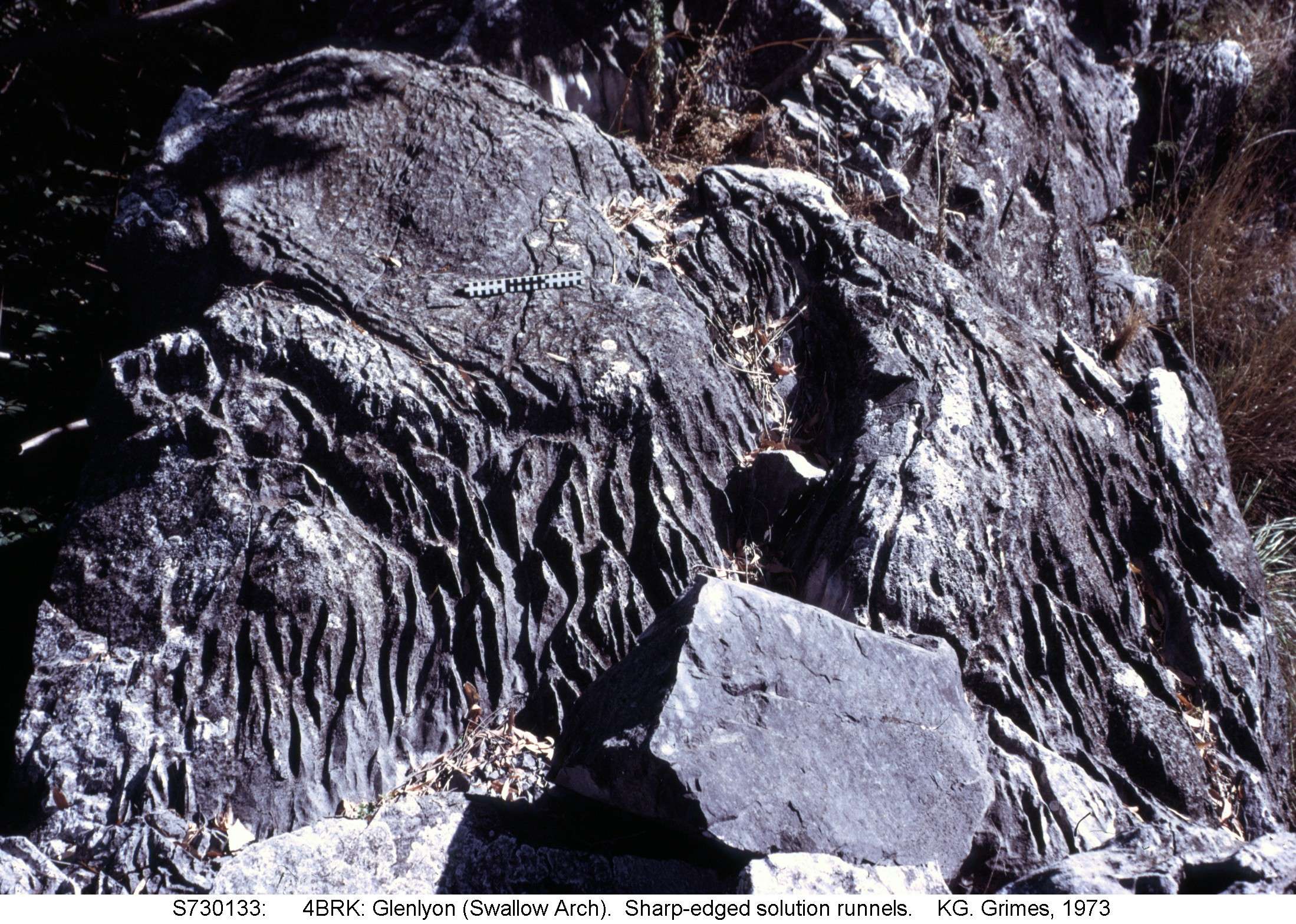 Glenlyon streamcliff. Exposed subsoil karren. File: B730403.jpg |