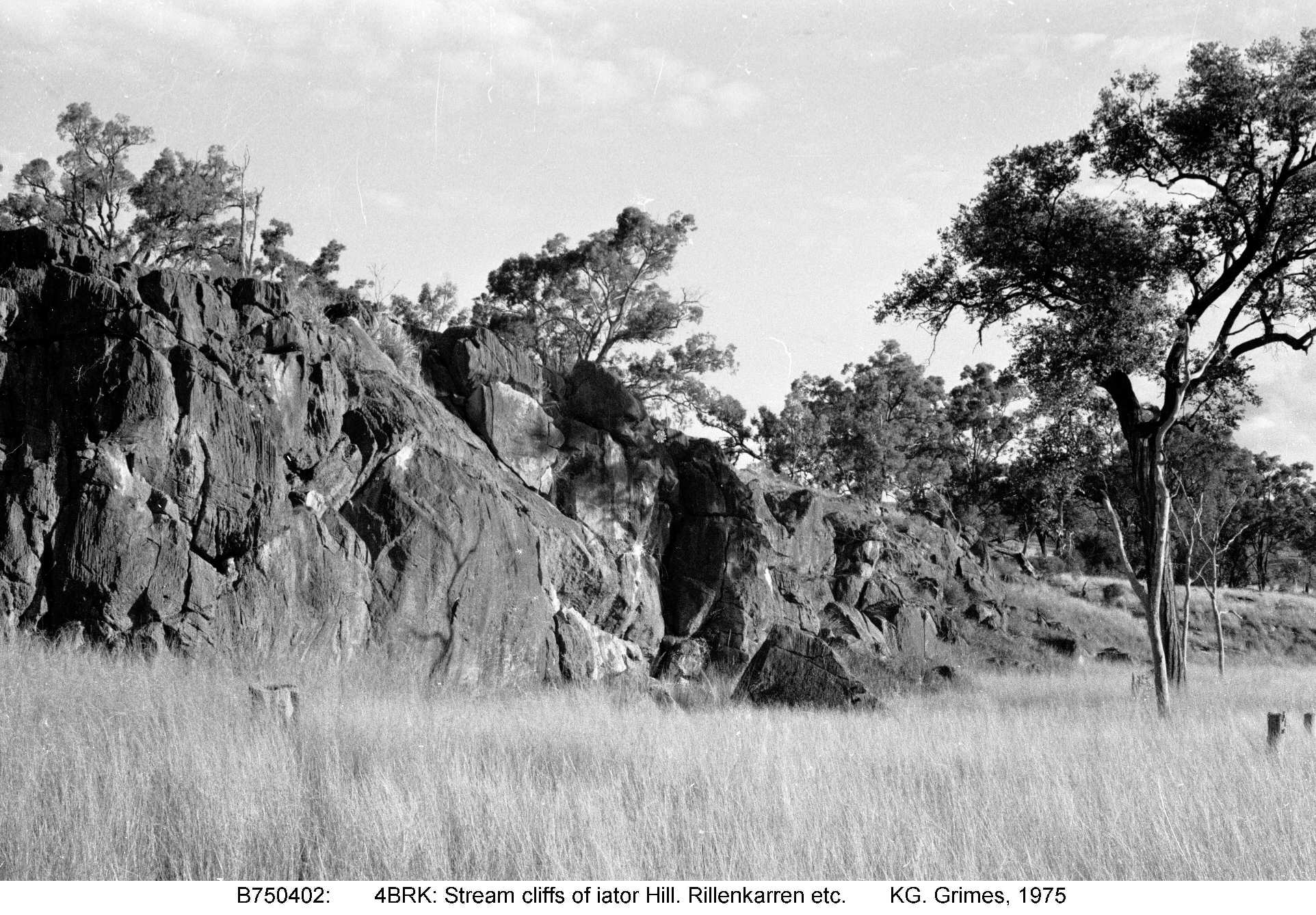 Old stream cliffs of Viator Hill, with an alluvial terrace in the foreground. File: B750402.jpg |