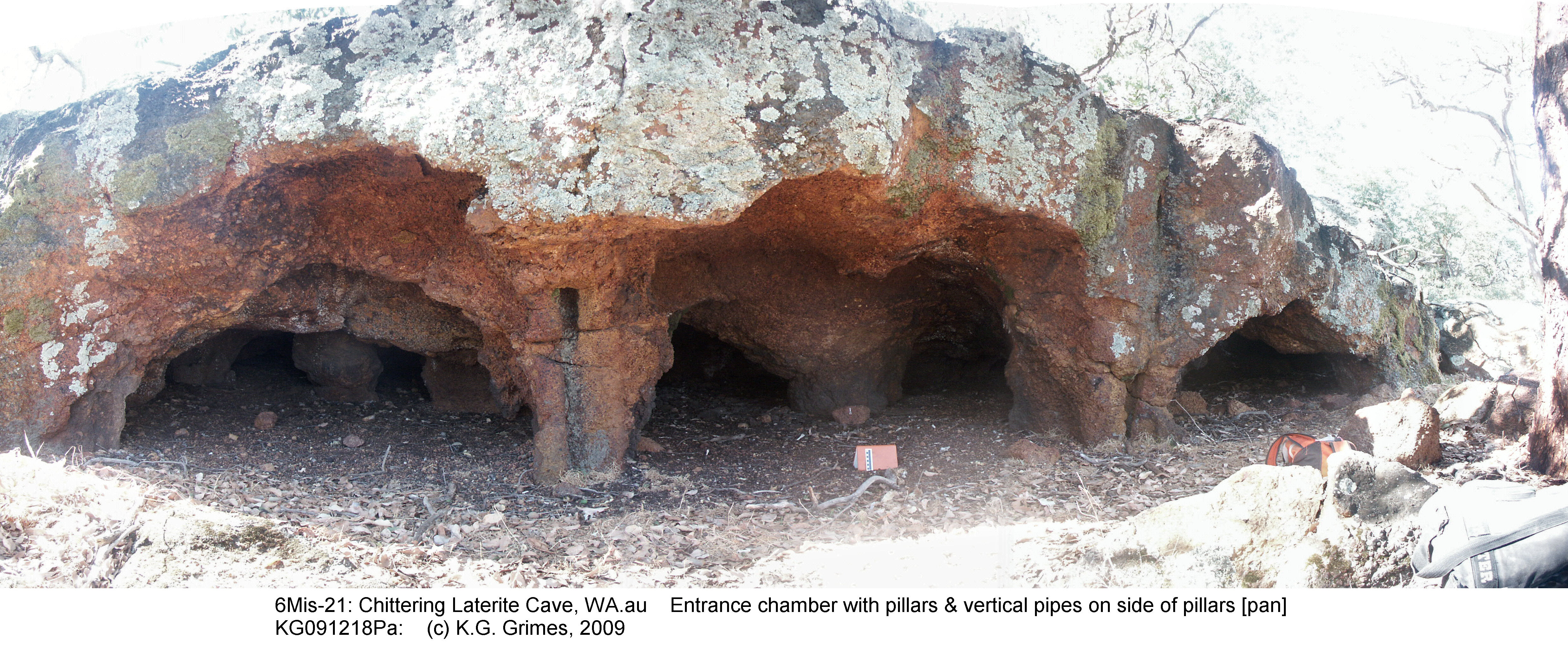 Caves typically occur in the softer weathered material beneath the duricrusts, which provide a hard roof. Solution and piping removes the softer material to form small caves, some of which can be complex mazes (e.g. Lefroy & Lake, 1972)