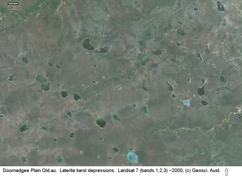 Large collapse dolines have been reported from the lateritic Stuart Plain of central Northern Territory (McFarlane & Twidale, 1987), but as the laterite is underlain at a depth of 50-100m by a limestone formation it may be that these are subjacent karst features rather than due to silicate solution.