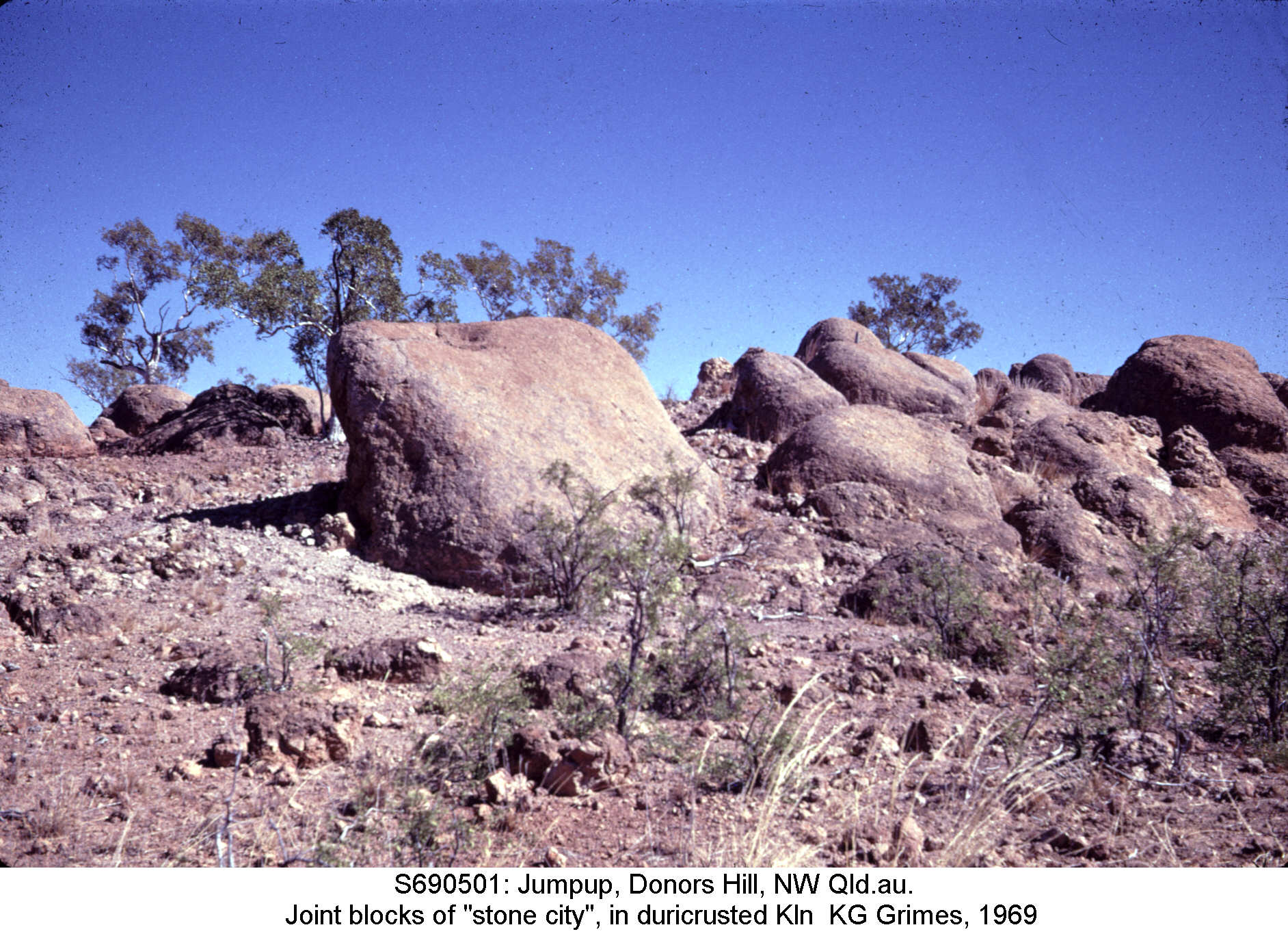Some duricrusts have strong jointing which forms fissures or cutters, and these can break up into "stone cities" analogous to those found in sandstone "silicate parakarst".