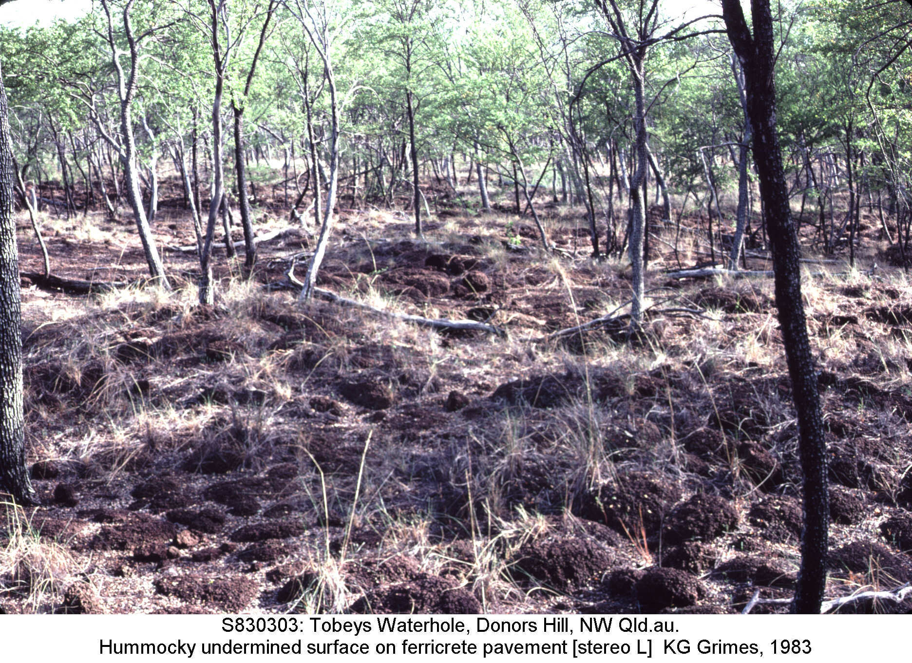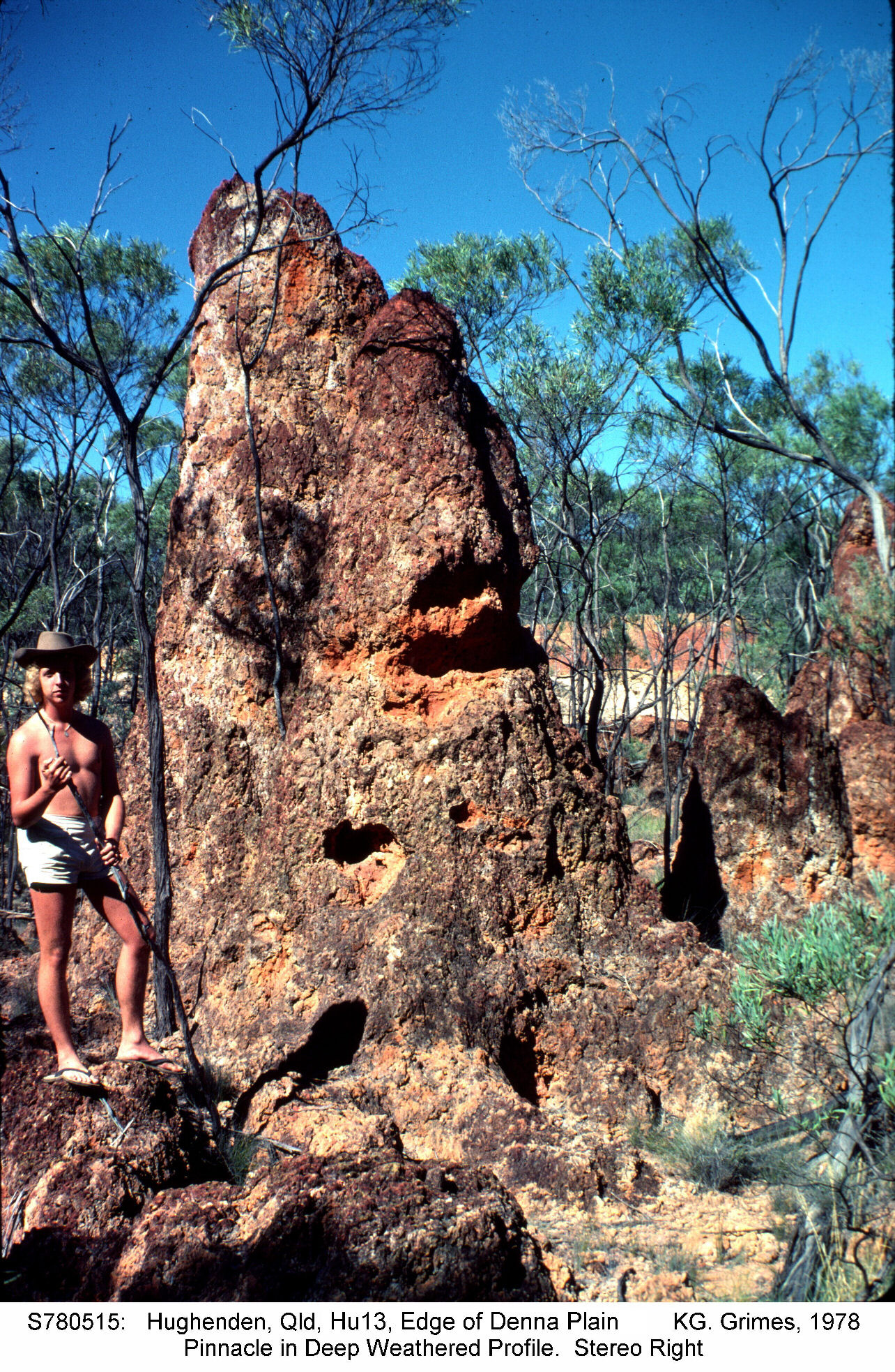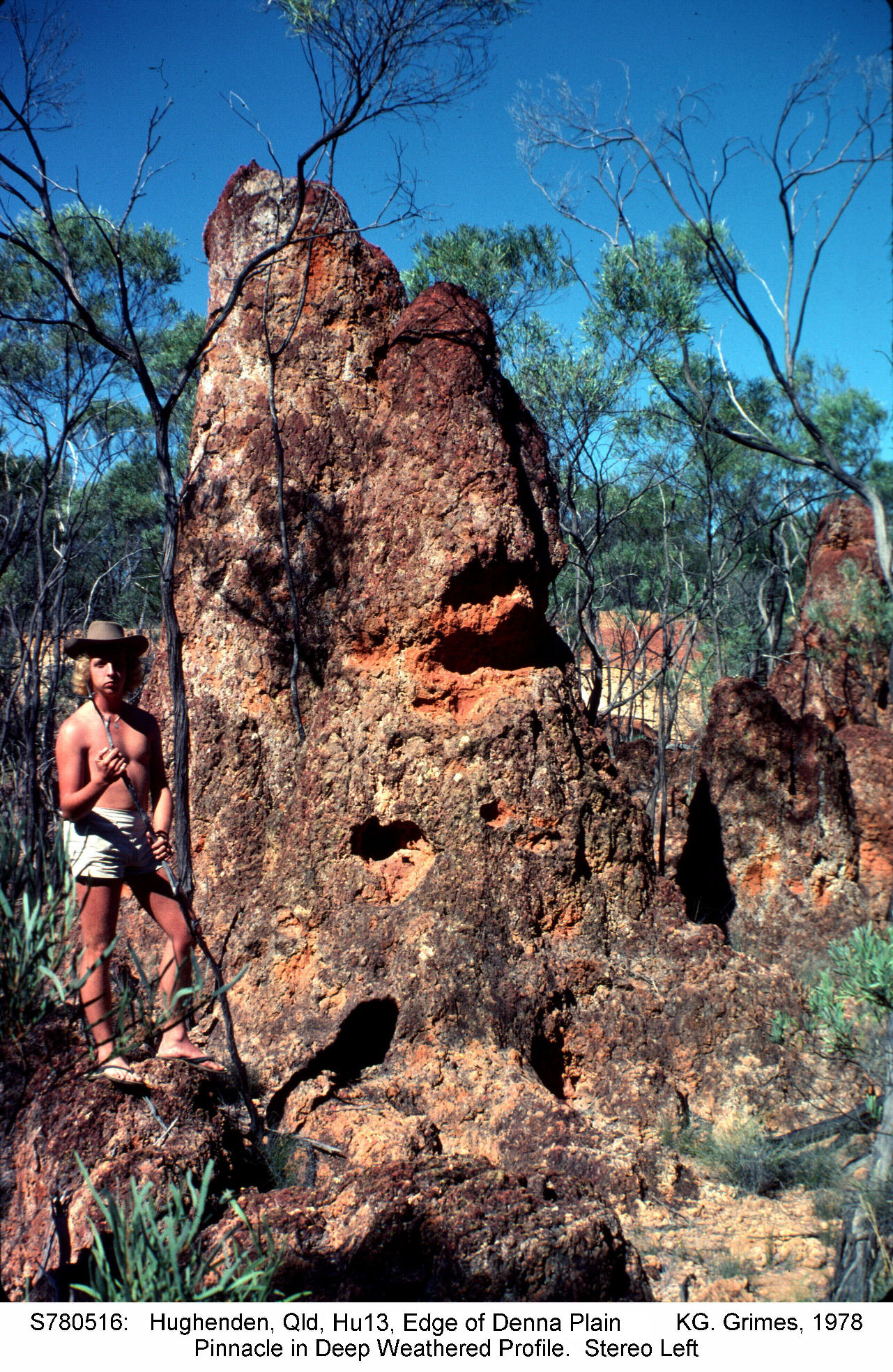 Stereopair of laterite pinnacles. Dissected edge of the Denna Plain, Hughenden, Queensland Stereopair - view cross-eyed. S780515.jpg and S780516.jpg |