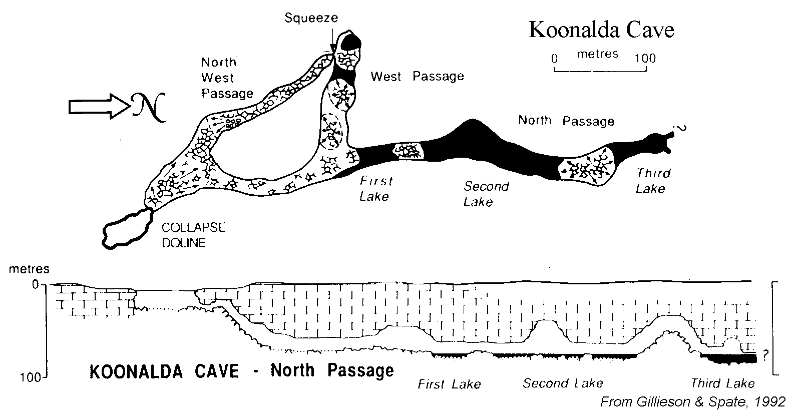 ![]() | Map of Koonalda Cave, showing watertable lakes. |
