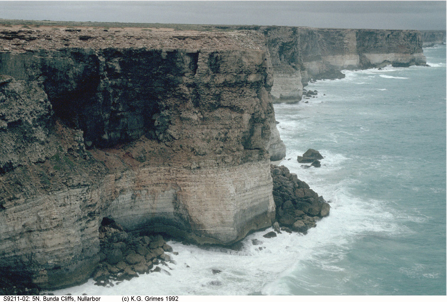 At the ocean edge of the plain, the Bunda Cliffs run as an unbroken vertical scarp for 200 km with a height between 40 and 100m. S9211-02.jpg |
