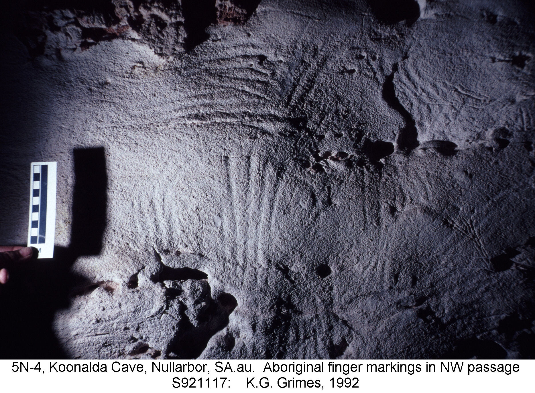 Aboriginal finger markings in area of chert mining, NW Passage of Koonalda Cave. S921117.jpg |