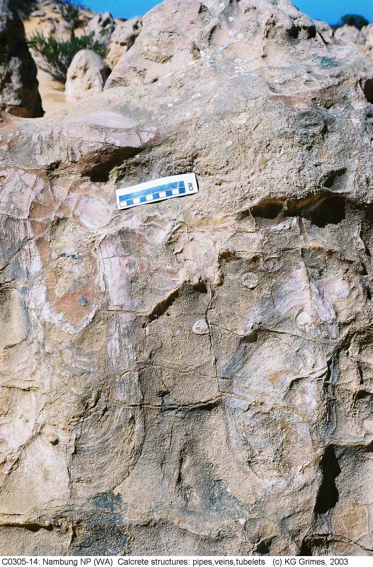 Calcrete structures exposed in the side of a pinnacle: Assorted pipes, veins and tubelets C0305-14.jpg |