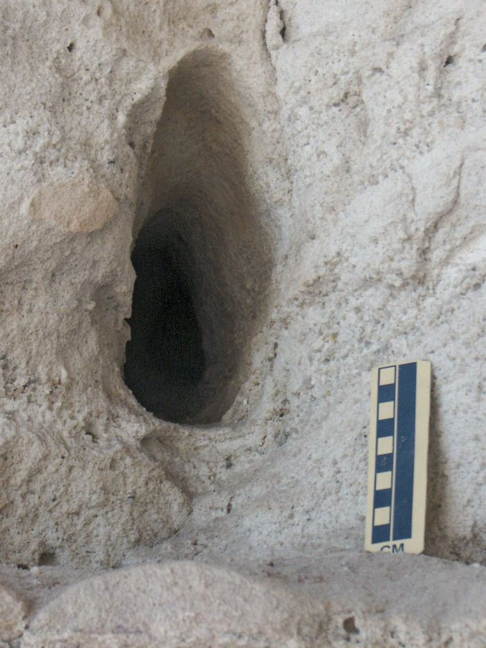 Horizontal solution tube, with cemented rim and loose sand on floor.