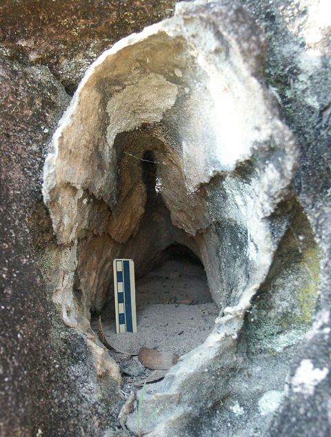 Pendants, columns or smaller "sand pots", occur within sandy cave fills as a result of either focussed seepage of water from the porous host calcarenite, or by dripping of saturated waters onto sandy floors (Grimes 1998).