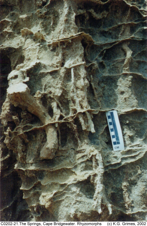 Rhizomorphs and calcite veins in dune limestone. near "The Springs", Cape Bridgewater, Vic. C0202_21.jpg |