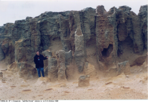 | Stereo-Pair of solution pipes at the "Petrified Forest", Cape Bridgewater, Vic. View stereopair with crossed-eyes C980404.jpg | ||