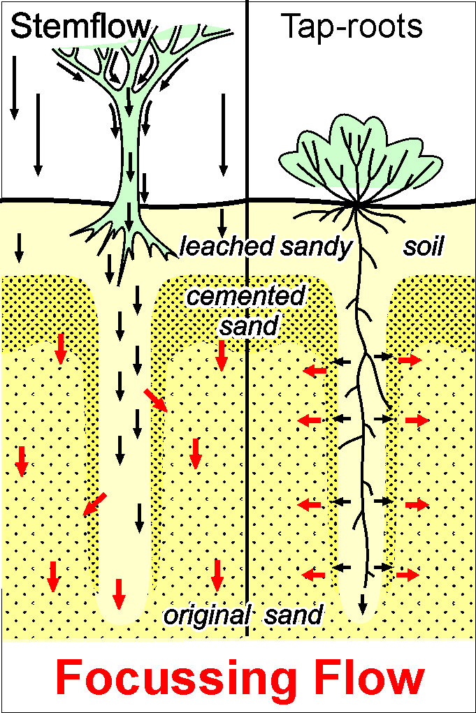 Various ways of focussing the vertical flow into the dune. |